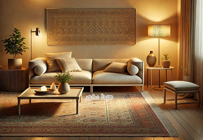 - اندازه متناسب : اندازه فرش نیز باید با ابعاد فضا هماهنگ باشد. در دکوراسیون مینیمال، استفاده از فرش های کوچکتر که بخش هایی از کف را خالی بگذارند، بهتر است.